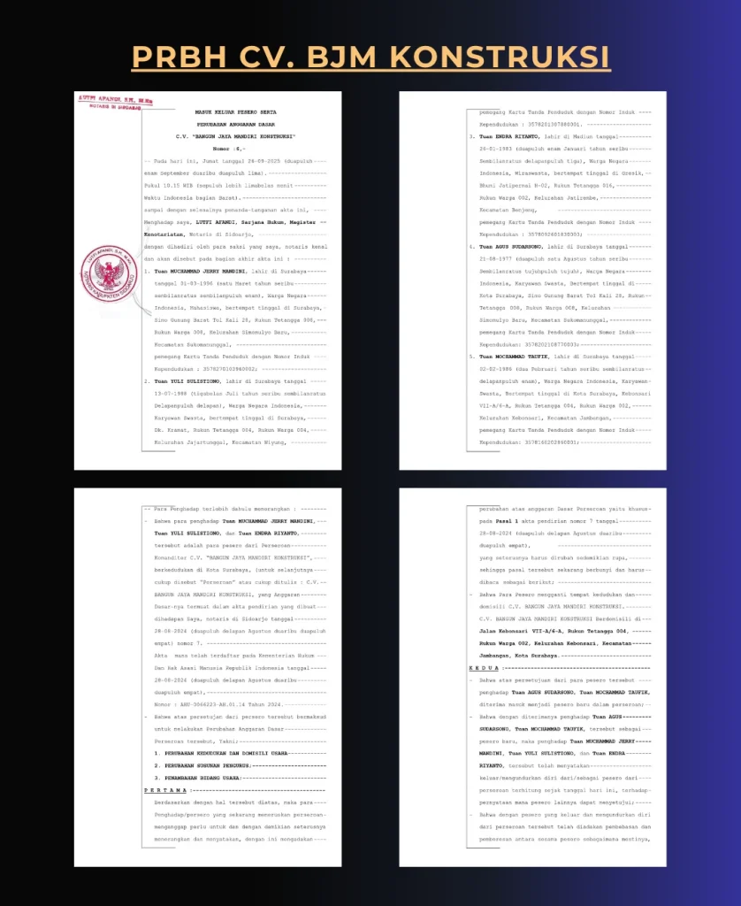 Dengan semangat profesionalisme, inovasi, dan adaptabilitas, kami terus tumbuh menjadi perusahaan konstruksi yang tangguh, terpercaya, dan kompetitif di berbagai proyek berskala nasional.